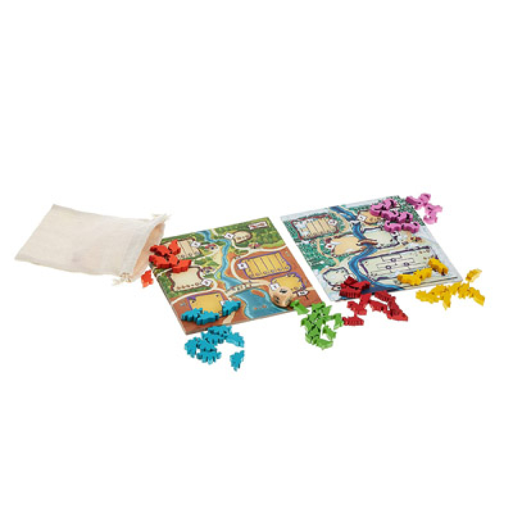 Your goal in Draftosaurus is to have the dino park most likely to attract visitors. To do so, you have to draft dino meeples and place them in pens that have some placement restrictions. Each turn, one of the players roll a die and this adds a constraint to which pens any other player can add their dinosaur. Draftosaurus is a quick and light drafting game in which you don't have a hand of cards that you pass around (after selecting one), but a bunch of dino meeples in the palm of your hand.