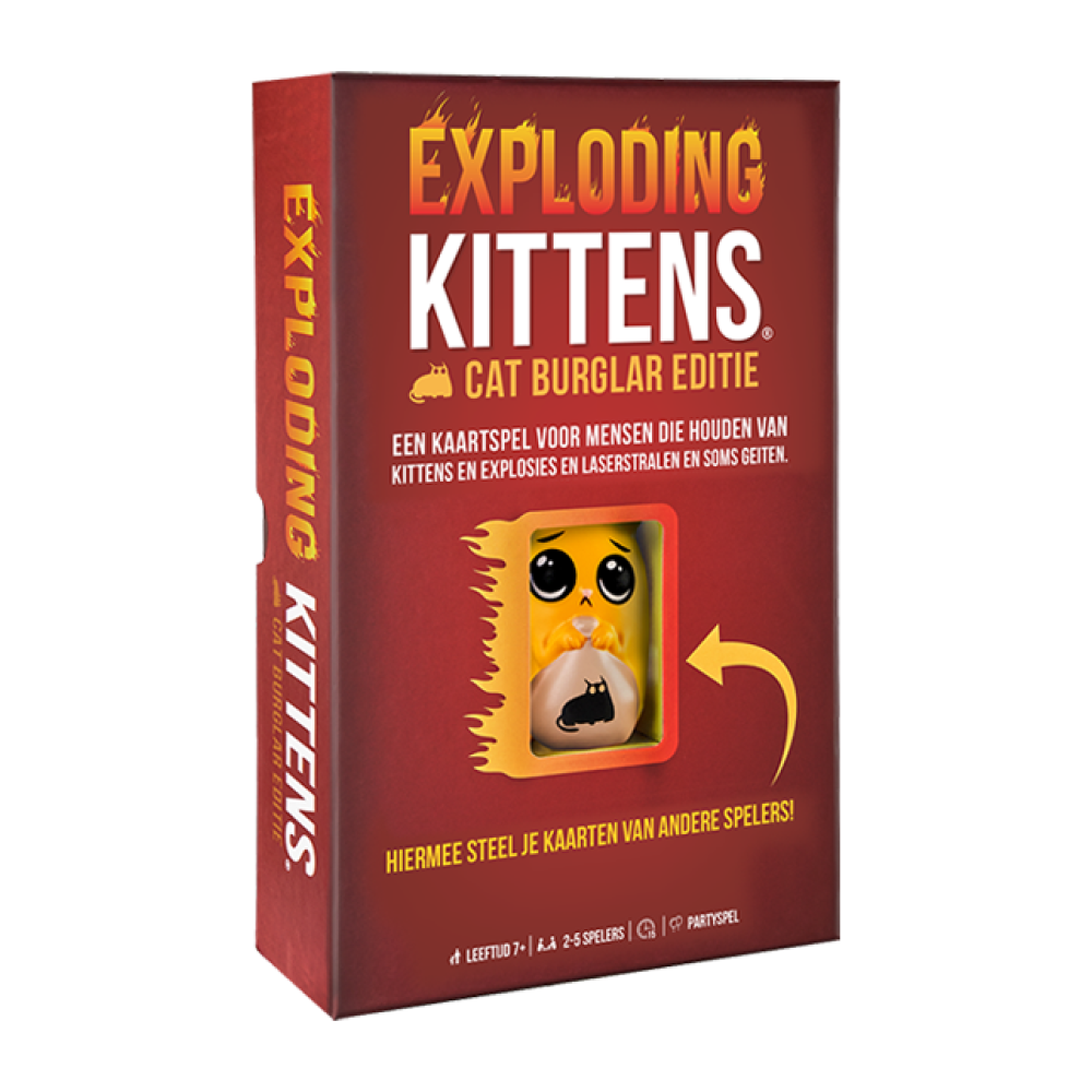 Exploding Kittens is een kaartspel dat een combinatie is van Russisch Roulette en schaken. Doel van het spel is net zo lang te overleven totdat je de laatste speler bent. Eigenlijk is het spel heel simpel: wanneer je aan de beurt bent, speel je je “actiekaarten”. Er zijn diverse acties die je kunt spelen. De ene kaart gebruik je om een tegenstander te vloeren, een andere gebruik je om een aanval af te weren. En als je de juiste combo speelt, kun je een aanval uitvoeren die het aantal spelers met één doet afnemen: KABOEM!