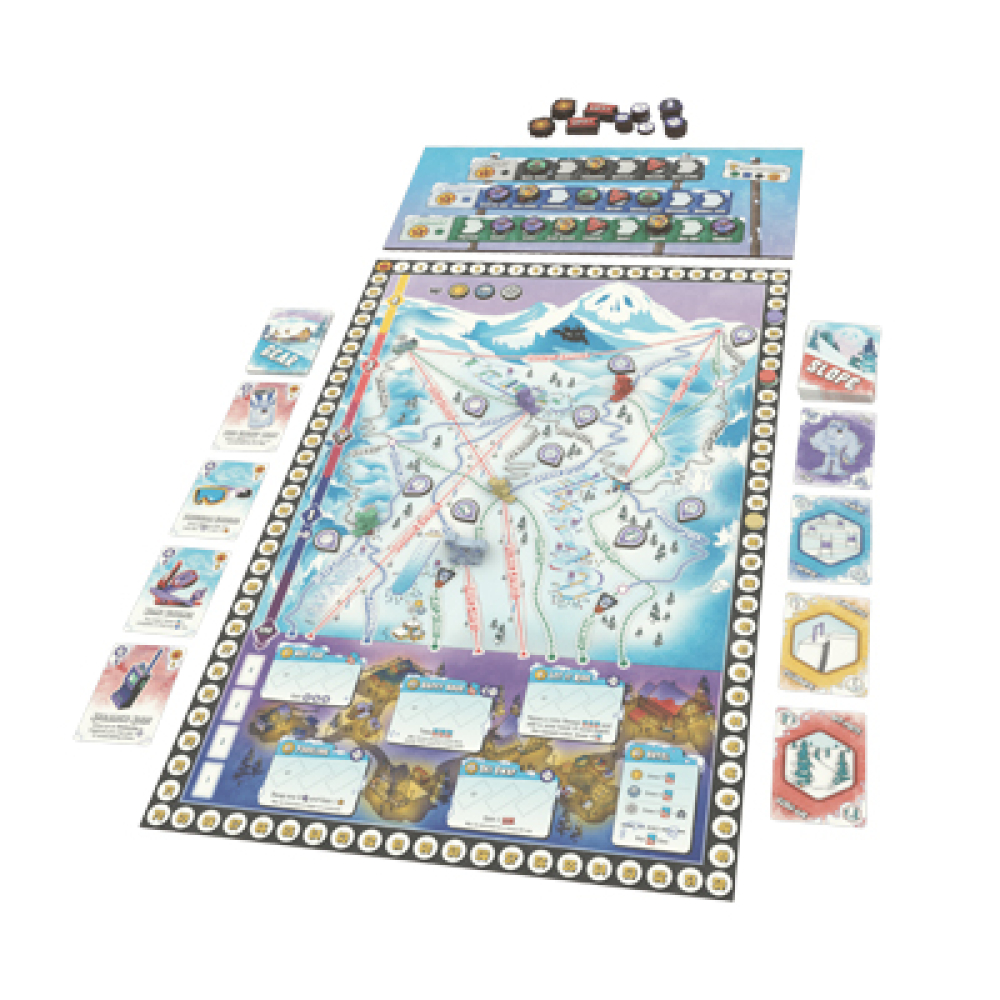 Prove you're the ultimate skier by taking on the most difficult runs, collecting the best gear, and earning the highest score! To get your ski on in Skull Canyon: Ski Fest, you need to collect and turn in matching sets of slope cards. Each set you turn in lets you ski a run on the mountain, earning victory points, fame, and a spot on the run scoreboard that tracks who performed best on each run. The higher a run's difficulty rating, the more cards you need to collect to complete it — but you'll also score more points and earn more fame.